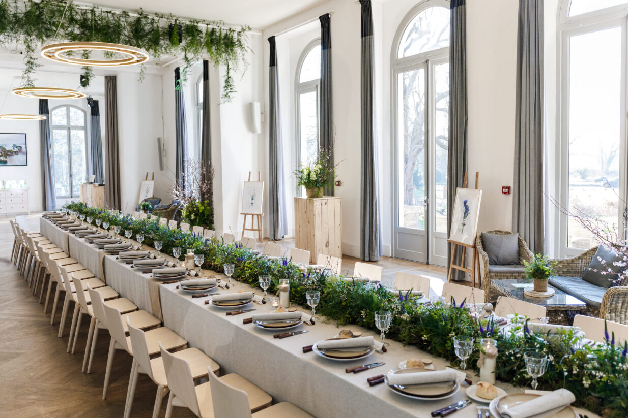 Organiser son événement au Château Boulogne, c’est avoir l’opportunité de profiter des fantastiques productions de Yann Arthus- Bertrand et du savoir-faire de la Fondation GoodPlanet : exposition vidéo sur deux étages du film « Human » de Yann Arthus-Bertrand, exposition photo des plus grands photographes internationaux sur deux hectares dans le parc, intervention de grands témoins, livres personnalisés… Château Boulogne propose une carte exclusive qui vise la perfection culinaire tout en respectant les engagements éco-responsables de la Fondation GoodPlanet. Ici, les produits sont bio et de saison !