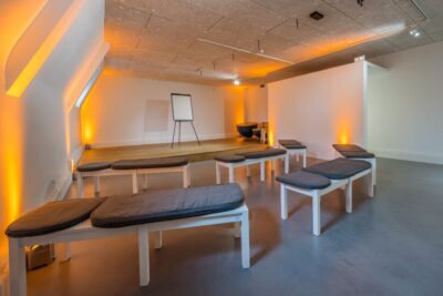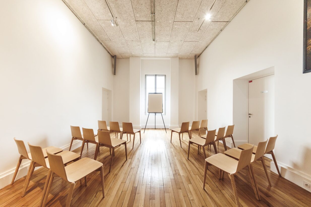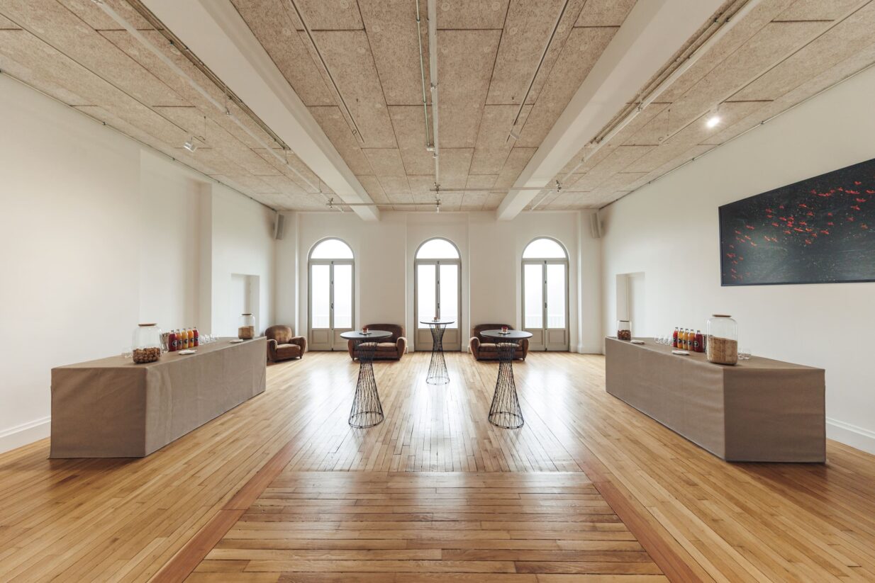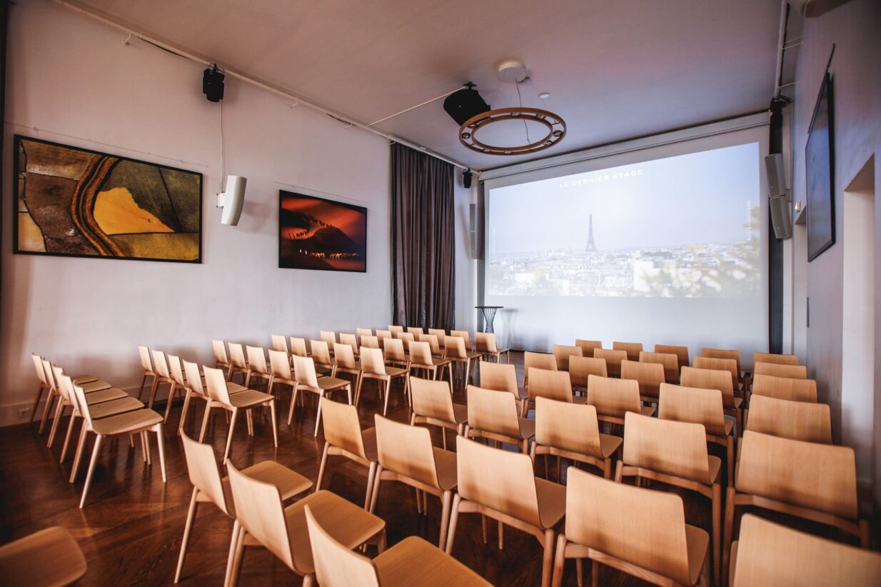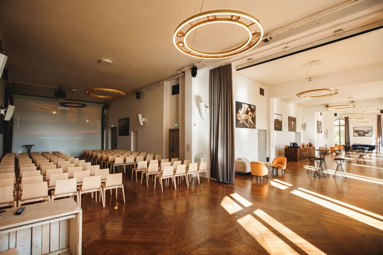 Le Château dispose d’une grande salle de réception de plus de 300m2, prolongée d’une majestueuse terrasse de 200m2 donnant sur l’hippodrome de Longchamp. Au premier étage, un auditorium de 72 places entièrement équipé son et vidéo HD, ainsi que de grands espaces d’expositions viennent compléter cet ensemble.