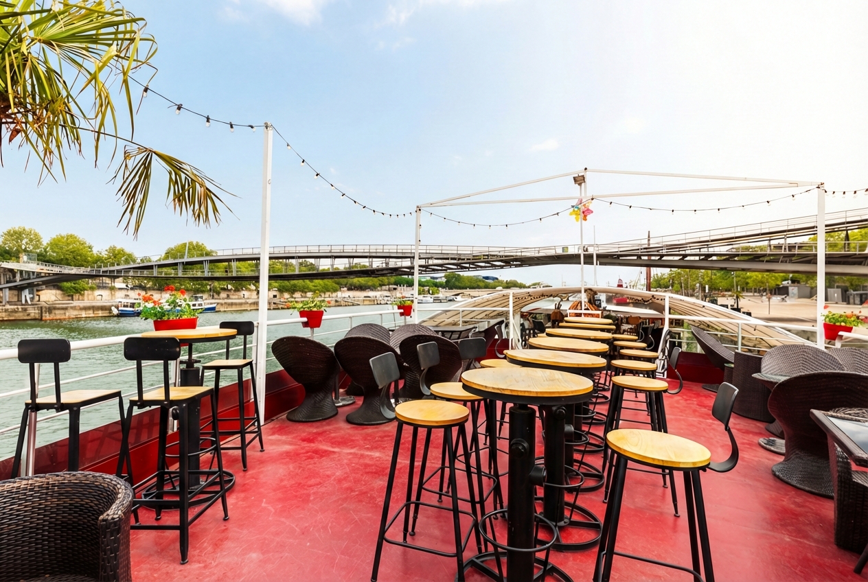 Le Nix Nox est un bateau qui est venu s’amarrer au port de la gare, à proximité de Bercy et de la bibliothèque Nationale. Idéalement situé, cet espace offrira une vue envoutante sur la Seine ainsi que sur le parc de Bercy.